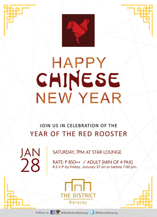RSVP by January 27, on or before 7 pm at (63 2) 234.9058 or at info@thedistrictboracay.com to avail of the offer. Reservations for minimum of 4 pax is required to avail of the special rate.