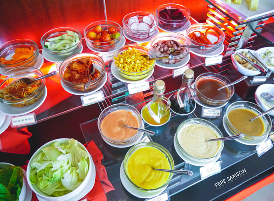 Those craving for something light and healthy will find delight in the salad station, which is laden with a smorgasbord of vegetables, condiments, and sauces. Fresh fruits on the adjoining section lure diners with their vibrant colors.