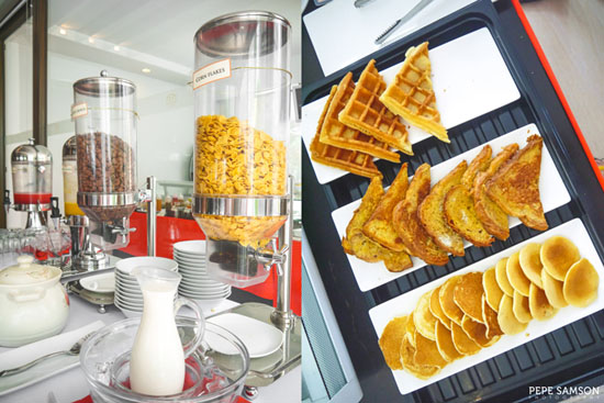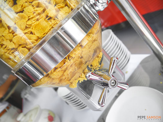 In a separate area is the live cooking station, and here, American favorites like pancakes, waffles, and French toast are also available. There are dumplings complete with sauces and condiments, as well as omelets cooked upon request. For something lighter, there’s an assortment of cereals to choose from.
