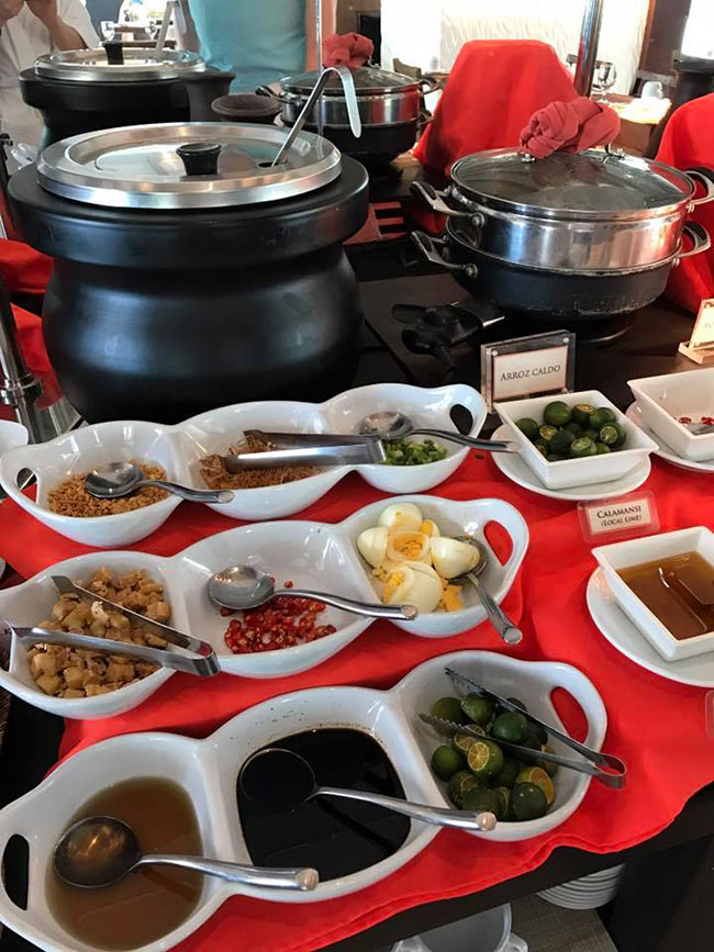 It was awesome! The buffet spread consisted of Filipino staples which I have sorely missed-tocino, boneless marinated bangus, longganisa. By 10:30 a.m., the chefs put out viands that are good and hearty for lunch. I enjoyed the coconut beef curry, the fish blanquette and Asian glazed chicken thigh, the arroz caldo station, and the salad station with their house made Caesar dressing. There is an extension to the buffet at the back where chefs are on hand to make you fresh pasta, stir fry noodles, an egg station where they whip up the fluffiest omelette. The chefs were kind enough to make me up an anchovy based pasta, sort of like a puttanesca upon request.