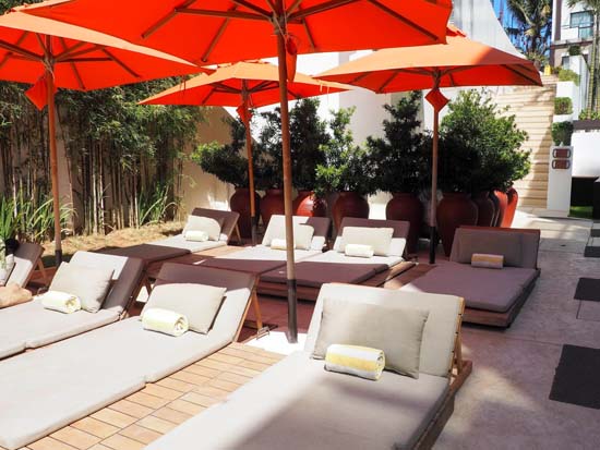 Modern and chic is the order of the day; crisp, clean white interiors greet you from the moment you enter a glass-doored reception that overlooks the beach. With the obligatory welcome cocktail and cold towel in hand, a stroll through the courtyard pool helps you get your bearings. The first floor and top deck is reserved for the hotel restaurant and bar, with the rooms tucked away from the main strip to ensure a good night’s sleep.